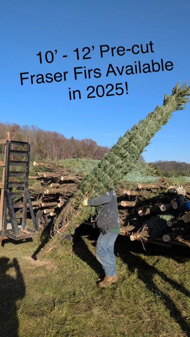Offering a large selection of precut Fraser Fir Trees 10'- 12’ tall